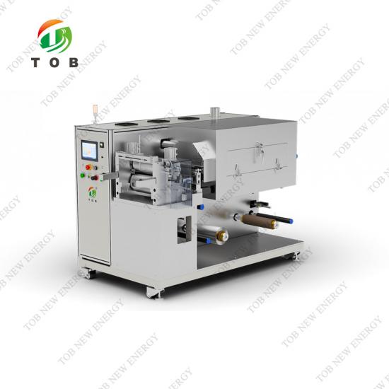 Deze TOB-KD200 rakelblad-continucoatingmachine voor accu's voert continue coatings uit, die gemakkelijk toepasbaar zijn bij oppervlaktecoatingprocessen op verschillende substraten, met name gebruikt in de lithium-ionbatterij-industrie.